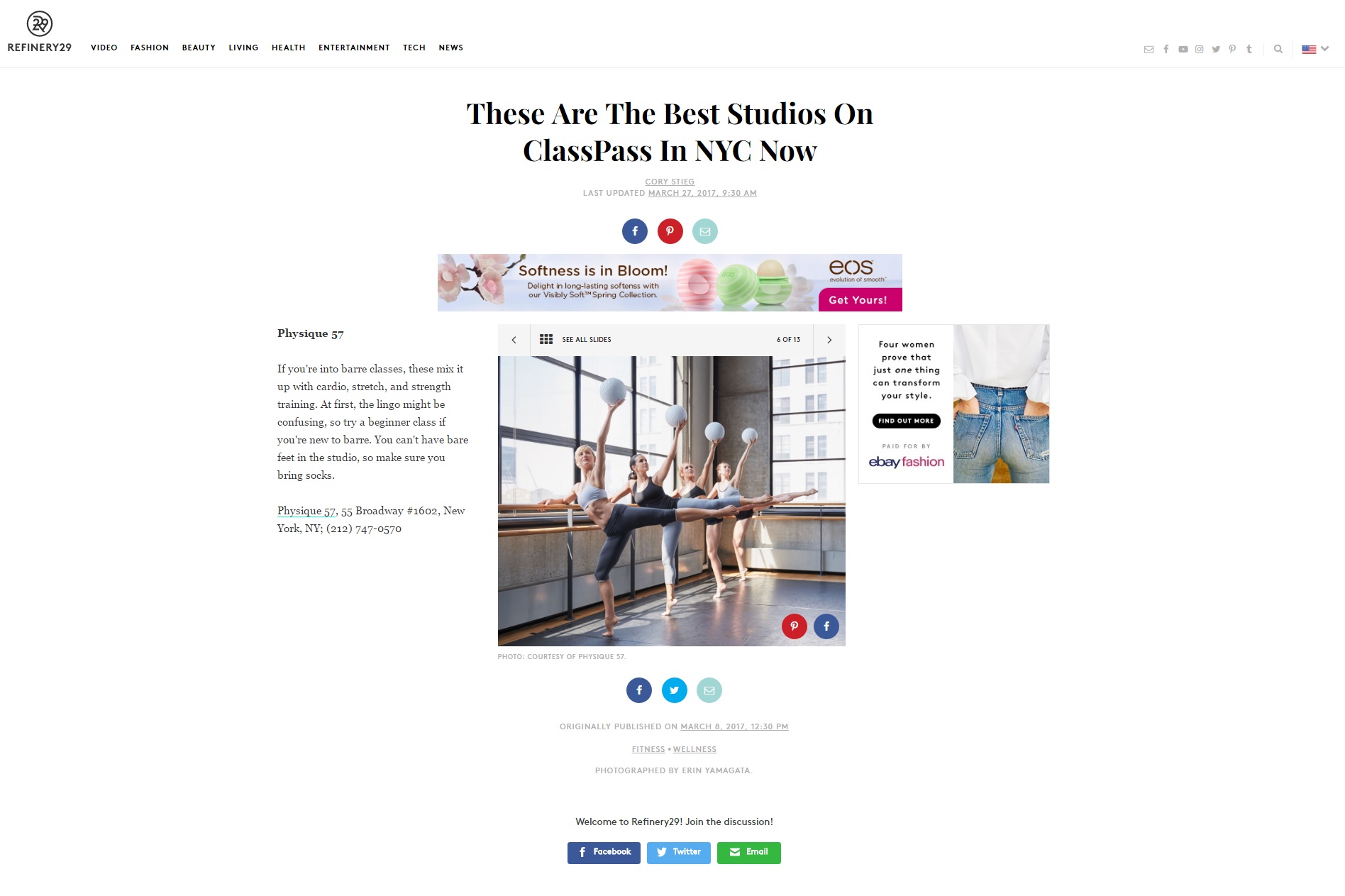 Physique 57 is this model’s favorite workout class, she says “you see results in less then three classes. It’s very painful but results [basically] guaranteed.”